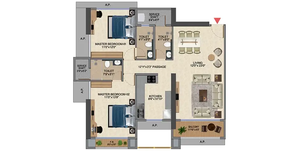 | 2 BHK | 583 SqFt | ₹45 Lakhs |
