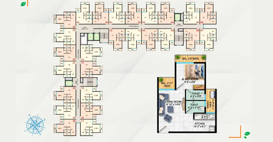Usha Residency Anjurphata offers a well-thought-out interior with branded hardware, sleek finished floor surfaces, designer doors and smart space planning in living, kitchen, and bathroom areas, providing convenience and comfort for a chic lifestyle in each 1BHK apartment.